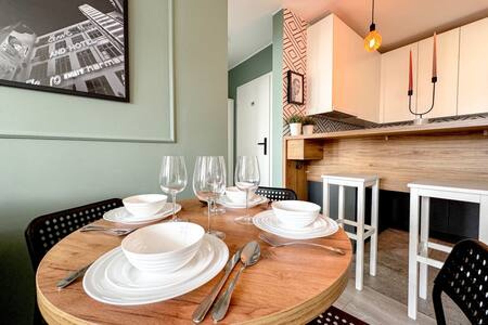 Stylowe miejsce na pobyt niedaleko centrum. DObry dojazd, obok CH Magnolia, blisko do Tarczyński Arena Stadium. Dużo miejsc z darmowym parkingiem przed budynkiem.